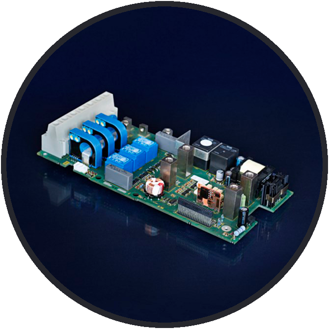 Power-, interface-, and control electronics on one single PCB without any connectors.